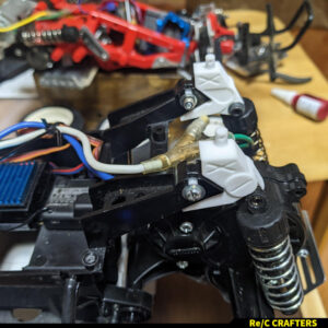 グラスホッパー2のボディを無改造で載せることができるようにホーネットのDのパーツを元に設計したのが、この3点式ボディマウントです。