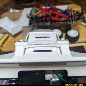 ですが、「ホーネットのシャーシ」と「グラスホッパー2のボディ」では一部干渉する部分があるので、グラスホッパー2のボディを一部削らないとホーネットのシャーシに載せることができません。